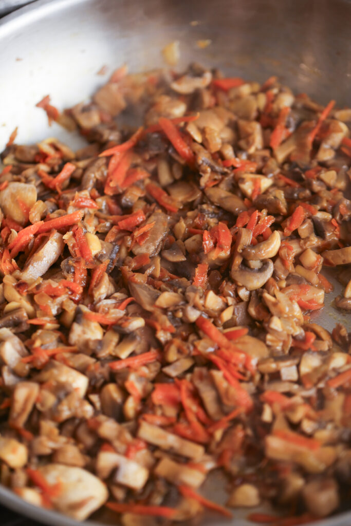Stir in grated carrot and cook for 3–4 minutes.