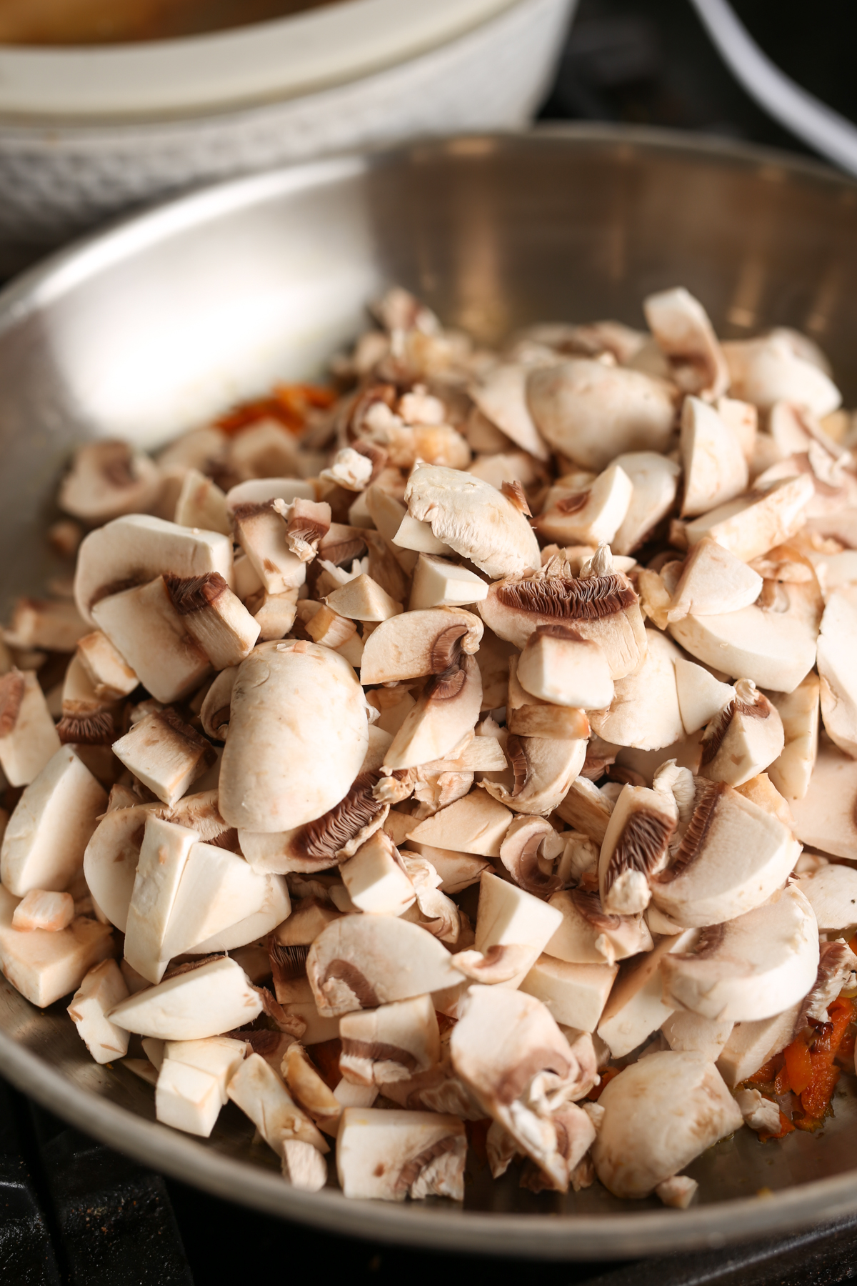 Add mushrooms and cook until all liquid evaporates and mixture becomes slightly golden.
