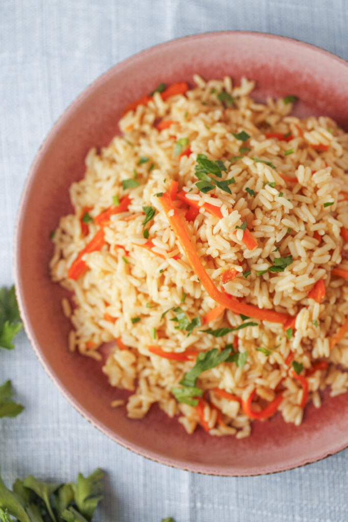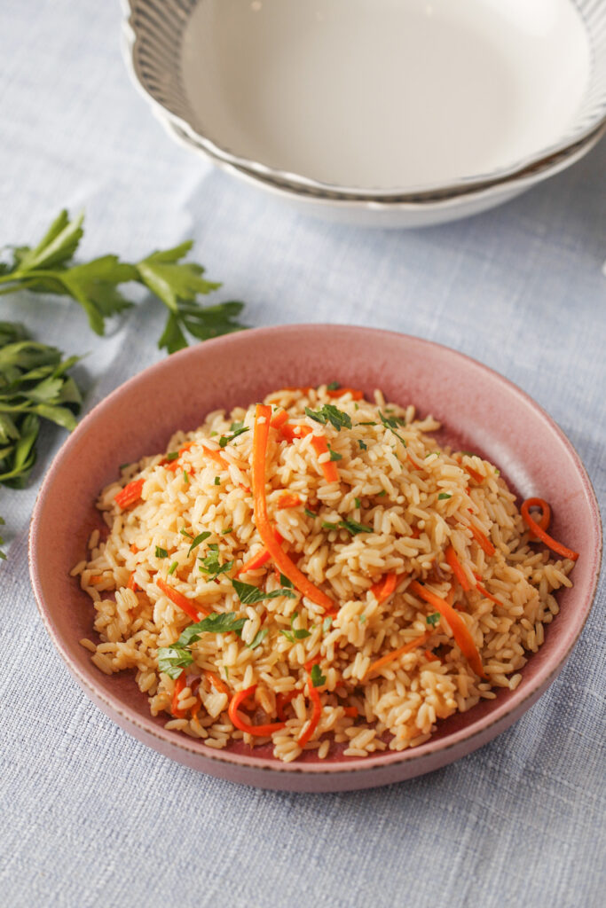 This carrot and onion pilaf with parboiled rice is a simple, comforting dish inspired by traditional Eastern European and Central Asian rice dishes. The rice is first toasted with sweet caramelized onions and carrots, then gently simmered in broth with a touch of cumin until the grains become fluffy and aromatic.